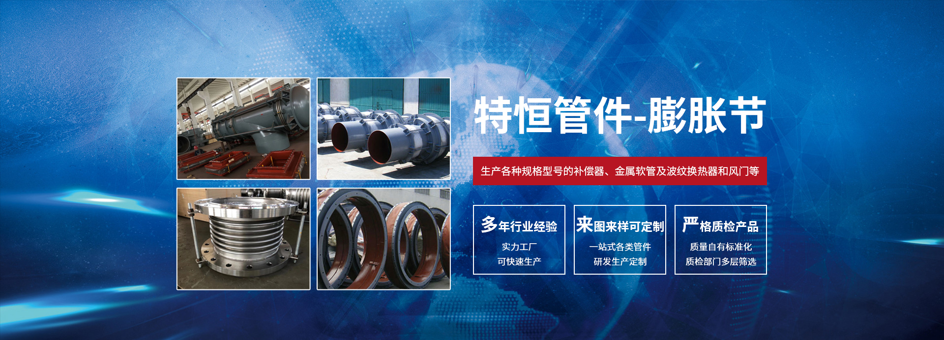 公司專業從事設計、生產金屬膨脹節、不銹鋼膨脹節、高溫膨脹節的廠家。工廠擁有各種先進生產、加工、檢測設備強大的技術力量。